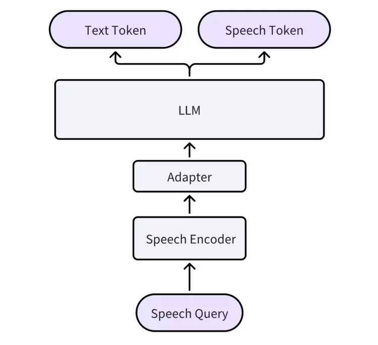 4.大语言模型(LLM):经过适配的语音表征输入到大语言模型中,LLM通过多模态处理能力生成响应完成任务。