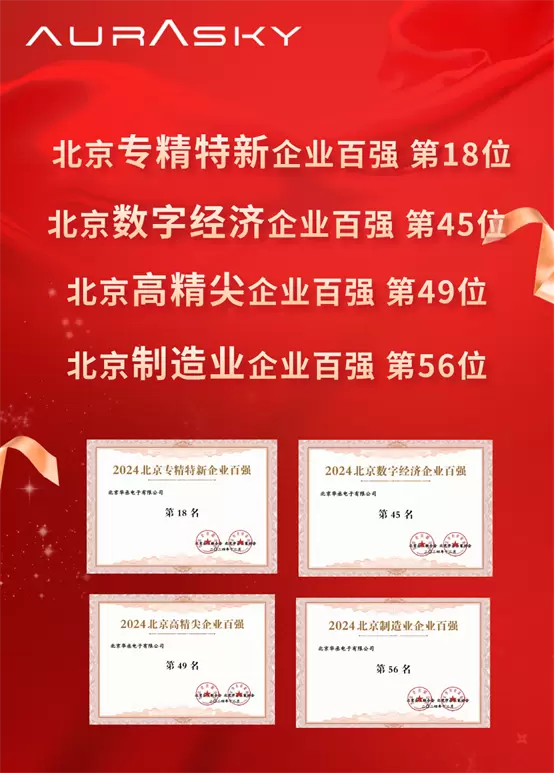 2024年收官在即,华丞电子不负努力,收获认可,获得“北京制造业企业百强”“北京高精尖企业百强”“北京数字经济企业百强”以及“北京专精特新企业百强”称号,连获四项荣誉,彰显了华丞电子在科技创新、文化传承、社会责任等方面的全面进步,更是企业综合实力和深远影响力的重要体现。