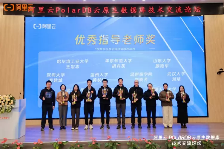 历经初赛、决赛、现场答辩等多个环节的激烈角逐,最终结果揭晓:来自武汉大学的“B站搜珞珈山数据库”队荣获一等奖。获得二等奖的4支队伍分别是中国人民大学的“德哥的小迷弟”队、武汉大学的“极地探险队”、华东师范大学的“DB-Rush”队,以及山东大学的“PolarDB只管出题,而选手要考虑的就多了”队。另有9支队伍获得三等奖,22支队伍获得优胜奖。除参赛队伍的学生获奖外,本届大赛还设置了“优秀组织奖”,以表彰积极支持大赛的10所高校。另外还设有“优秀指导老师奖”,共有来自10所高校的11位指导老师荣获该奖项。武汉大学彭煜玮老师获得“特殊贡献奖”。