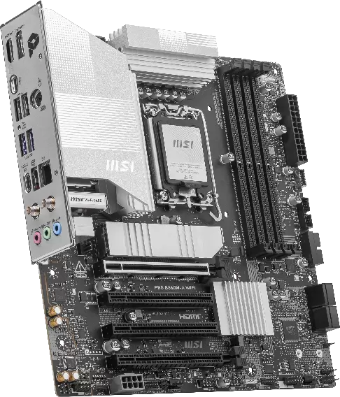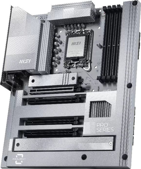 微星PRO 系列旨在满足从工作、商务到日常计算的多样化用户需求。其采用简约的银色设计,配备强健的12路智能供电,为Intel台式机处理器提供可靠的性能支持。