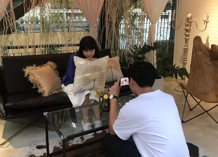 而实际上,拍摄环境竟然是这样的,可以看到,现场的光线并不是那么充足,背景也稍显凌乱,但经过处理后,直出的照片也颇具美感。