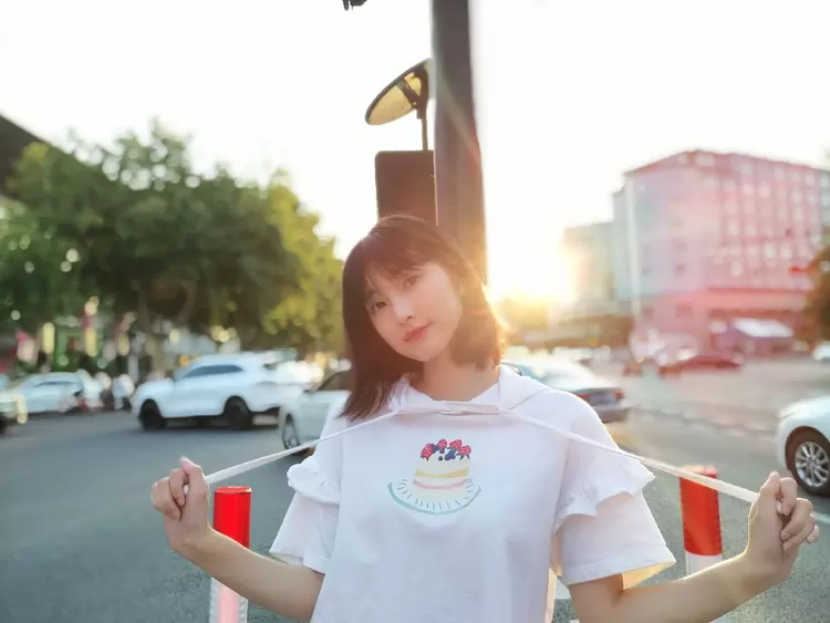 不仅是暗光夜景拍照出众,逆光环境下美图T9的直出照片也质量稳定。可以看到,背景中的车辆颜色依旧清晰自然,前景中的人物面部颜色也没有过暗或过亮,整体照片的明暗结构合理,色彩表现非常好。