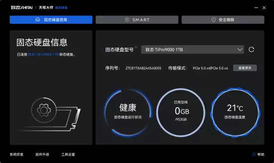 测试前,我们肯定是要确保SSD固件最新、状态良好的。这时候,长江存储致态的天枢大师固态硬盘管理软件就派上用场了。