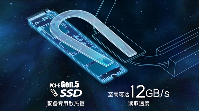 微星笔记本在散热上也带来全新设计:开创式的给固态硬盘SSD提供专用散热管。这套散热系统,可以为PCIe 5.0固态硬盘至高降低10度,确保在高负载下也能实现高速稳定的数据传输表现。更令人兴奋的是,为了进一步提升存储性能,微星还推出了 Super RAID 5,将 PCIe 5.0 和 PCIe 4.0的固态组合阵列,实现至高18,000MB/s 的惊人读取速度,超快的速度带来更加丝滑无感的使用体验。