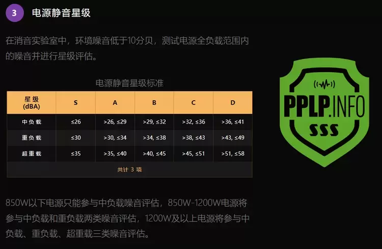 PPLP电源静音星级系统是PPLP电源效能星级计划的重要组成部分,该系统的测试模型能模拟消费者使用PC电源的大部分工况,且其评级体系能直观、科学、全面地反映PC电源产品的静音水平,能为消费者选购PC电源时提供静音体验参考。