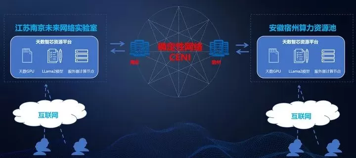 目前对于百亿参数大模型跨域分布式训练,基于CENI确定性网络,江苏南京与安徽宿州跨域500KM使用天数智芯GPU训练吞吐性能相比同一智算中心内吞吐性能为95%。
