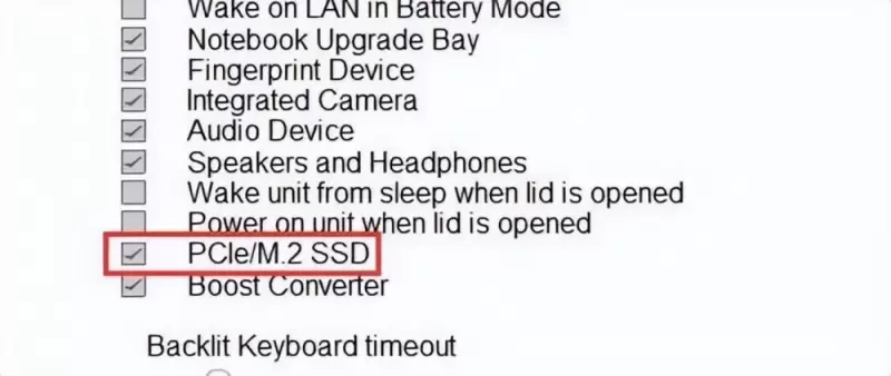 先检查M.2接口是否被关闭,或者模式设置是否正确(要设置成NVMe,而不是SATA)。由于不同品牌主板BIOS的UI和配置方式各不相同,这就需要大家对照主板的说明书或使用手册来进行,例如下图是某品牌机BIOS中的M.2开关选项。