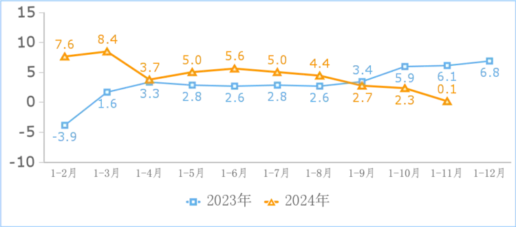 从分领域运行情况来看,信息服务领域企业收入小幅增长。2024年1—11月,以信息服务为主的企业(包括新闻资讯、搜索、社交、游戏、音乐视频等)互联网业务收入同比增长2.2%,增速较1—10月回落4.8个百分点。