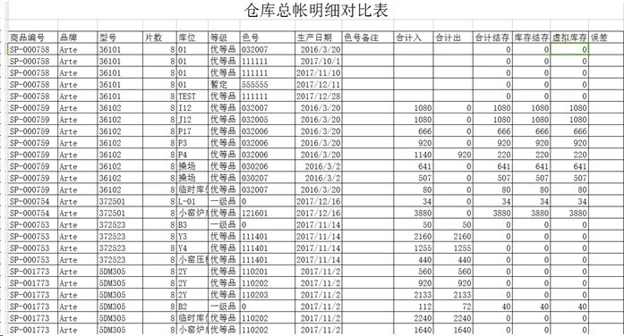 这个表格比较特殊,是一个报表型,用来检查设计的模板,有没有出现错误,比如出库单,没有正确的回写库存,有的时候,问题发生的并不明细,不能马上知道,要如何检查,就用以下的办公实现,列出每个商品型号,先得到由回写生成已经写死的库存表,然后再写入所有的入库合计与出库合计(由填报的表单计算)然后进行对比,数据不一样的代表: