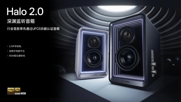 功能表现:Halo 2.0内置65W氮化镓模块,既能为音箱稳定供电,又能作为桌面充电站,为其他设备充电。减少线材杂乱,特别适合追求简洁桌面环境的年轻用户,是一款集音质、设计和实用性于一身的高端音箱。