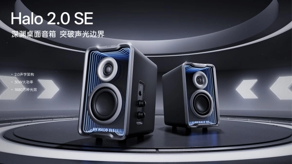 Halo 2.0 SE在外观设计上相较于Halo 2.0更加突出电竞元素和年轻化风格,它采用了更加激进和动感的线条,营造出强烈的视觉冲击力,更好地迎合了电竞玩家的审美需求。在价格方面,相较于Halo 2.0,Halo 2.0 SE提供了一个更加亲民的选择,同时保持了Halo系列的核心设计元素和声光体验,使其成为小空间和预算有限用户的理想选择。声学方面,Halo 2.0 SE拥有23mm丝膜球顶高音和2.75英寸中低音单元配置,后置式倒相设计,低频下潜至63Hz,提供了饱满且震撼的低频体验。这款音箱以其紧凑的尺寸、激进的电竞风格设计、以及高性价比,成为年轻用户和电竞玩家桌面2.0音箱的质价比优选。