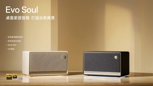 Evo Soul桌面家居音箱:专为居家场景设计,Evo Soul采用皮纹和网面织物碰撞,细腻融合,也优化声音传播效果。为给居家用户带来高质量的聆听体验,Evo Soul配备Hi-Fi级扬声器单元,并获得了Hi-Res金标认证。搭载LDAC高清音频解码技术,确保了清晰、丰富的音频表现,适合在家中享受高品质的音乐体验。