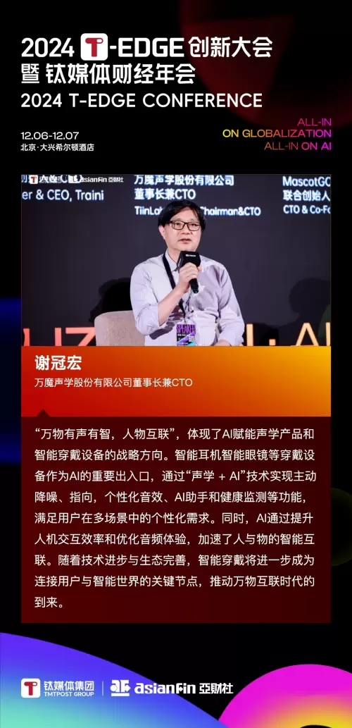 万魔声学董事长兼CTO谢冠宏先生一直致力于推动万物互联时代的到来。近年来他多次出席音频产业峰会,与业内同行交流心得体会,分享智能声学的AI趋势与应用,并坚信AI人工智能将推动声学产品的创新与发展。在近期钛媒体年度峰会上,谢冠宏先生还提出“万物有声有智,人物互联”的构想。在企业创立之初,万魔声学就开始了人工智能的长线布局,深入探索声学与智能产品的融合。除了在语音识别、机器学习/智能决策、智能发声、智能降噪等领域的研究,万魔声学还注重用户体验的提升,力求在智能声学技术的应用中为用户带来更好的感受。现如今,万魔声学实现了智能声学领域的创新与突破,借助AI赋能穿戴设备。未来智能穿戴产品还可以接入chatGPT,能够理解人的命令来执行相应操作,以及绑定智能设备进行智能化应用等,真正实现一物一号、万物互联。