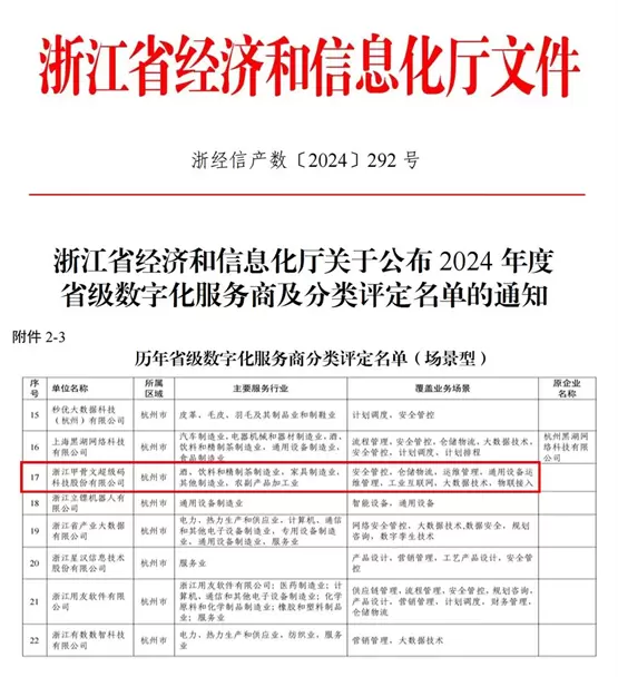 浙江甲骨文超级码科技股份有限公司是国家级高新技术企业、国家级专精特新重点小巨人企业、行业准独角兽企业、瞪羚企业、杭州市重点培育后备上市企业、杭州市名牌企业、杭州市院士专家工作站、农业农村部全国大数据基座主要技术服务商、浙江省知识产权示范企业,致力于为政企客户提供“产业大脑+乡村大脑+数字工厂”整体数字化+解决方案。