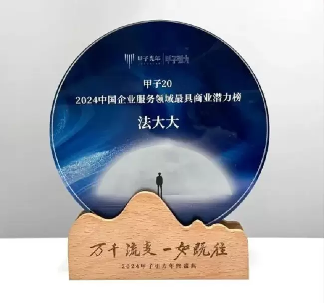 前不久,在中国科技产业智库「甲子光年」主办的“2024甲子引力年终盛典”上,法大大荣登“2024中国企业服务领域最具商业潜力榜”。