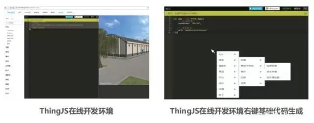 开发者可登录www. thingjs.com网站直接开始在线开发,还提供各类简化开发者开发工作的功能,比如,开发者右键自动生成基础代码。