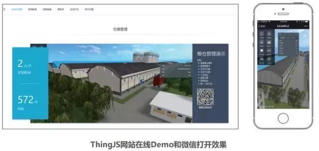 ThingJS平台采用浏览器原生的WebGL方式实现3D能力封装,不仅兼容IE11 ,Edge ,Chrome,Firefox等浏览器,而且还可以在手机、PAD等移动端访问,甚至微信扫码也可以直接访问。http://www.thingjs.com的Demo示例可以微信扫码访问。