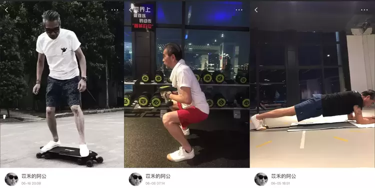 除了是一位“穿搭博主”,苡禾的阿公还不折不扣是一位生活方式博主。阿公在美图秀秀记录了他的精彩生活:早起喝咖啡,定期健身,玩玩滑板,“巡视”游艇。