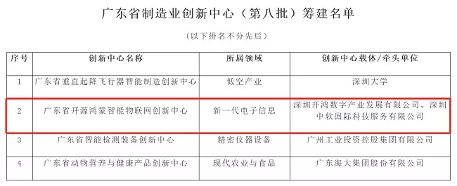 - 深开鸿入选广东省省级制造业创新中心筹建名单