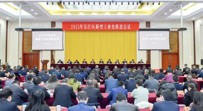 1月10日,苏州市吴江区召开推进新型工业化工作会,动员全区上下聚焦新型工业化继续向高而攀、向新而行、向智而进。区委书记李铭出席会议并讲话,区委副书记、区长孙建江主持会议。区人大常委会主任钱斌,区政协主席曹雪娟,区委副书记张炳高,及区领导区领导汤浩、李文斌、陈伟杰、陈建忠、沈伟江、王之成等出席会议。