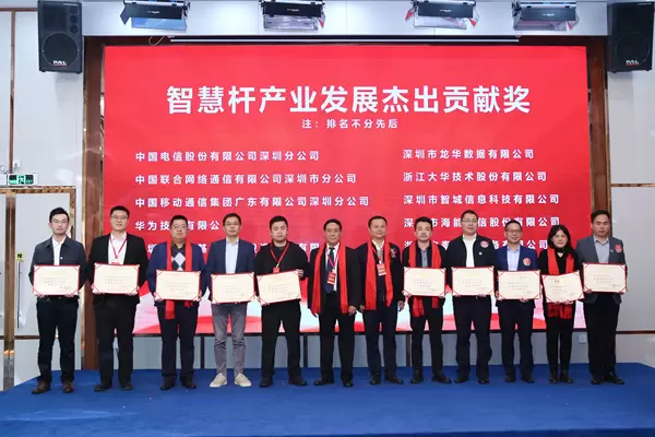 会上深圳市智慧杆产业促进会向行业优秀企业颁发智慧杆产业发展杰出贡献奖,向会员单位颁发优秀会员单位奖。