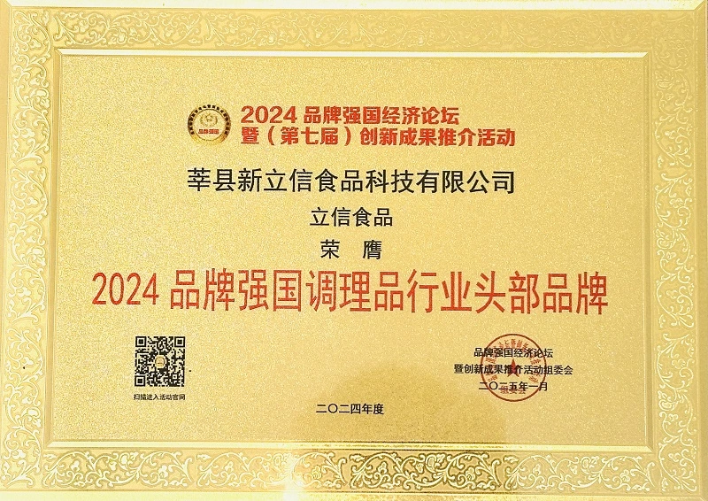 2025年1月10日至11日,由中国商报社、《中国商界》杂志社、央视《发现品牌》栏目组、对外经济贸易大学中国国际品牌战略研究中心、品牌强国·自主品牌优选工程等多家单位联合主办的2024品牌强国经济论坛暨(第七届)创新成果推介活动在北京全国人大会议中心举行,新立信食品受邀出席并荣获“2024中国调理品行业标杆企业、2024中国调理品行业头部品牌、2024中国调理品行业领军企业”三项荣誉称号。
