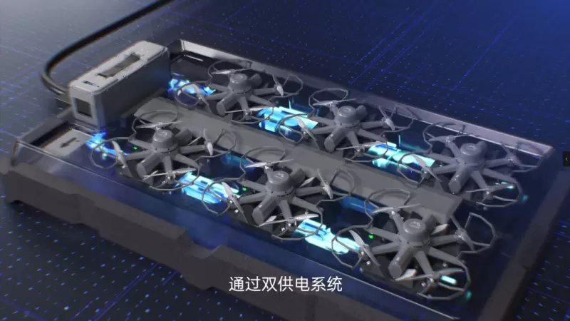 大漠大V4系统以自动化、智能化为驱动,全球首创机巢式集群充电商业化应用。这项革命性技术实现了通过双供电系统,在一次布场后即可进行连续飞行,解决了传统无人机集群表演中的“续航”问题,创造了“一次布场,无限续飞”的新纪元。