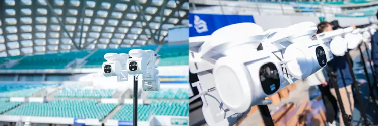 (赛事现场:神眸消费级产品全景赛事直播夜视全彩效果清晰明亮)