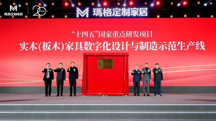 玛格家居在实木及智能化方面的成绩,也得到了政府的高度认可。会上“‘十四五’国家重点研发计划项目--实木(板木)家具数字化设计与制造示范生产线”正式落地,重庆市巴南区政府副区长杨亚平先生,重庆市巴南区经济和信息化委员会主任祁家宏先生,重庆数智产业园建设实业有限公司董事长丁华先生,国际木材科学院院士/南京林业大学教授吴智慧先生、熊先青先生,玛格家居董事长唐斌先生共同参与了揭牌仪式,助推着玛格家居向智能领域更深更广去探索,实现高质量发展。