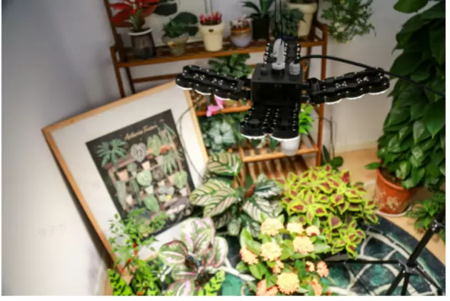 三思照明的展翅植物灯搭载少见的的植物光学系统,能通过收集周围杂散光,优化光线利用率,比普通植物灯实现更高、更均匀的照度,帮助加速植物的光合作用,促进更健康的生长。