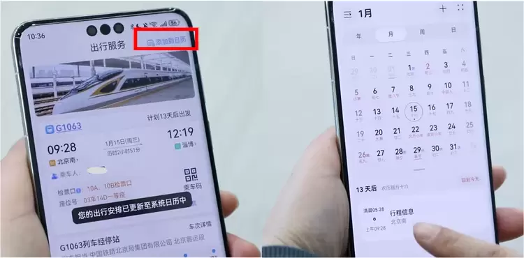 同时,基于HarmonyOS NEXT的创新能力,鸿蒙原生版铁路12306实现了不少创新体验,让大家的购票和出行都能更加便捷。春节回家心切,大家在购买火车票后都会想办法记录出行时间,以免错过行程。当我们使用鸿蒙原生版铁路12306时,订票完成后只需点击页面右上角“添加到日历”按钮,系统就会自动在日历中创建日程信息,开车时间、站点名称等信息一目了然,并在出发前提醒用户做好准备。