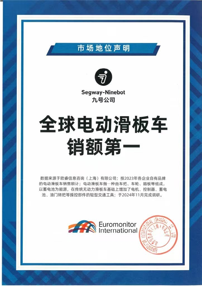 - 九号引领智能出行新风潮。六项权威认证见证,以智能化技术塑造市场格局