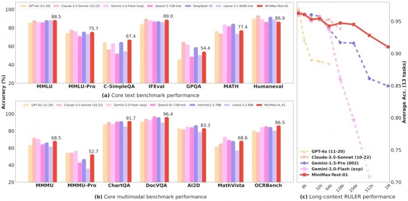 ▲ MiniMax-01系列模型长上下文处理能力全球领先。(图源MiniMax-01系列模型技术报告)
