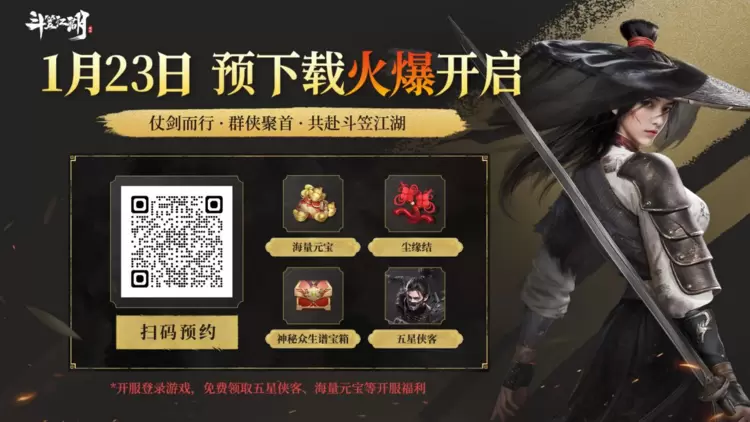 江湖再会,侠客归来!国风硬派新武侠手游《斗笠江湖》自曝光以来就深受大量玩家的期待,经过一段时间的等待后,今天终于迎来了激动人心的时刻!游戏将于1月23日正式开启预下载,届时各位大侠就可以提前下载游戏,预备开启扬名斗笠江湖的新征程,多样好玩的侠客养成系统,量大管饱的竞技PK玩法,静待你来体验!
