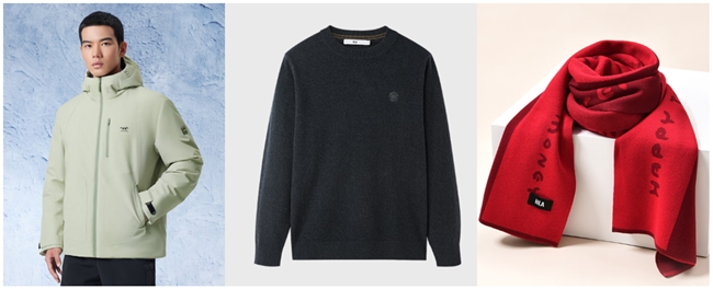年货礼包中,包括羽绒服、毛衣、围巾等保暖服饰。其中羽绒服采用800蓬95白鸭绒填充,抗寒性能出色,面料耐磨耐穿易打理;长袖毛衫选用100%纯羊毛,亲肤柔软,撞色字母印花简约大方,既好看又好穿;红色围巾时尚有型,配色亮眼吸睛,戴上不仅舒适保暖,也让护林员们成为林海雪原中一道亮丽风景线。