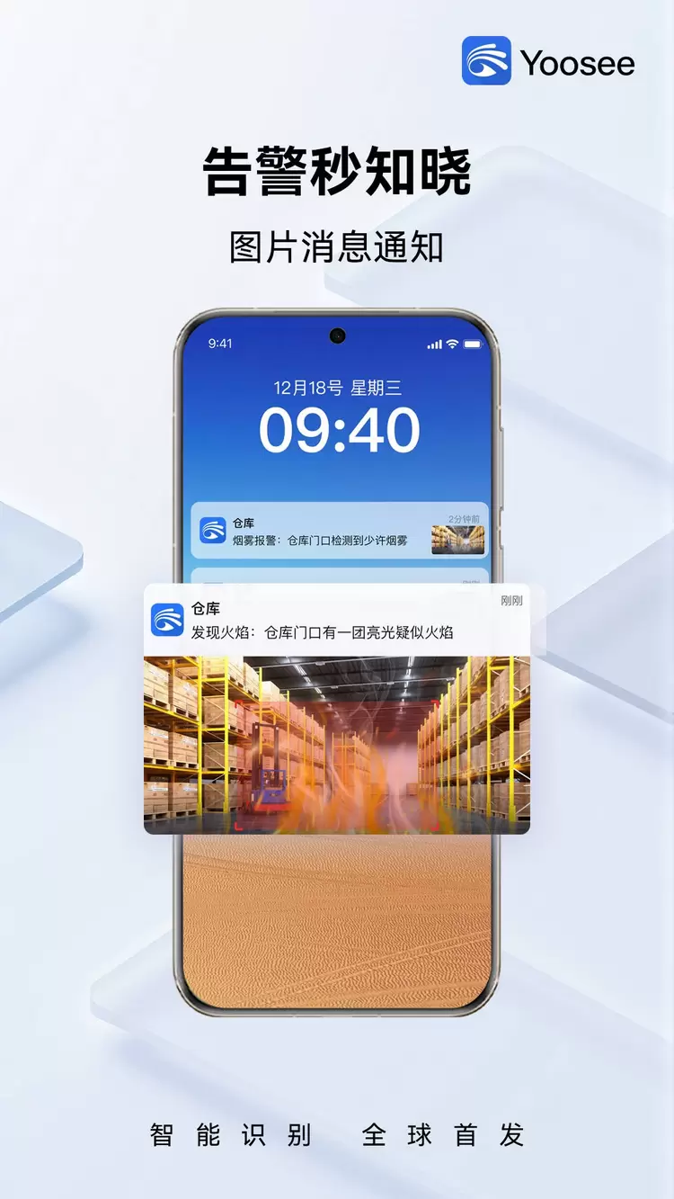 Yoosee App新增的“图片消息通知”功能,不仅会给手机推送事件消息,还会提供图文说明。