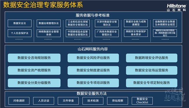 此外,为满足客户数据安全的建设需求,山石网科系统性推出数据安全咨询规划服务、数据安全资产梳理服务、数据安全分类分级服务、数据安全风险评估服务、数据安全制度建设服务、数据安全专项培训服务、数据跨境安全评估服务、数据安全驻场运营服务和数据安全专项定制化服务等九大服务,为客户提供全方位、多层次的数据保护服务,提升数据安全防护能力,保护组织核心数据资产,助力组织各项业务快速发展。