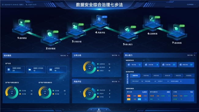 2024年,山石网科数据安全综合治理平台做了全面升级,不仅对软件架构进行迭代,还增加了一款国产化款型及对应虚拟化款型,进一步壮大数据安全国产化产品家族。该平台作为数据安全治理的神经中枢,以数据安全治理七步法为规划内核,可应用于数据体量大、覆盖区域广、应用场景杂、持续治理难的企事业单位。