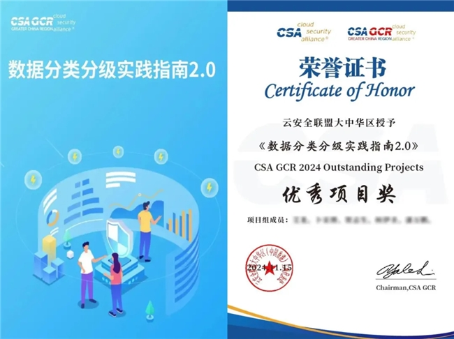 11月,在第八届云安全联盟大中华区大会上,山石网科参与编写的《数据分类分级实践指南2.0》正式发布,《指南》还获得“CSA GCR 2024年度优秀项目奖”。