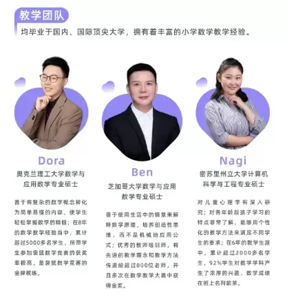 公司核心团队成员均来自华为、腾讯、新东方等知名机构与企业,他们拥有 18 年以上数学教学、国际教育、互联网、海外市场管理等丰富经验。