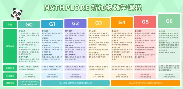Mathplore 新加坡数学的课程体系完善且科学,课程分为 G0 - G6 七个等级,全面涵盖新加坡和国内小学数学大纲的全部知识点。在夯实基础知识的同时,通过扩展奥数、袋鼠竞赛等竞赛挑战题,让孩子具备数学竞赛能力,取得优异成绩。