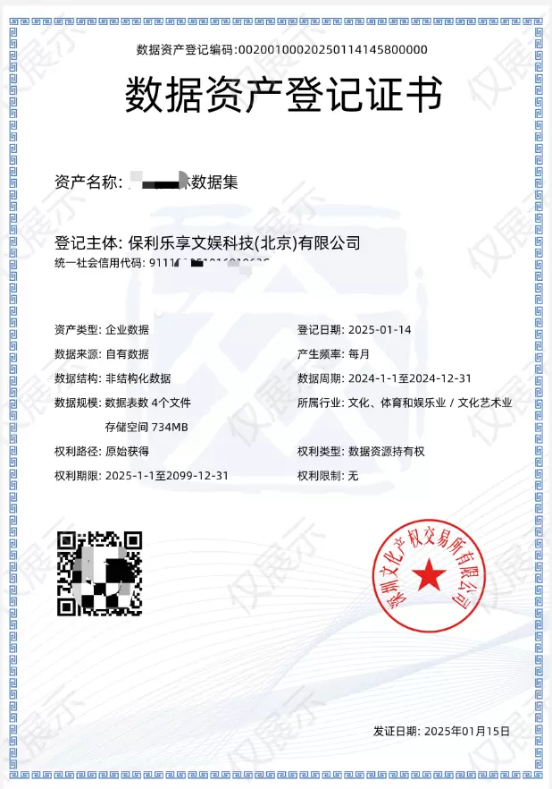 近日,保利文化集团旗下保利乐享文娱科技(北京)有限公司在全国文化大数据交易中心完成了数据入表,实现了首例国有文化央企数据入表的成功案例。