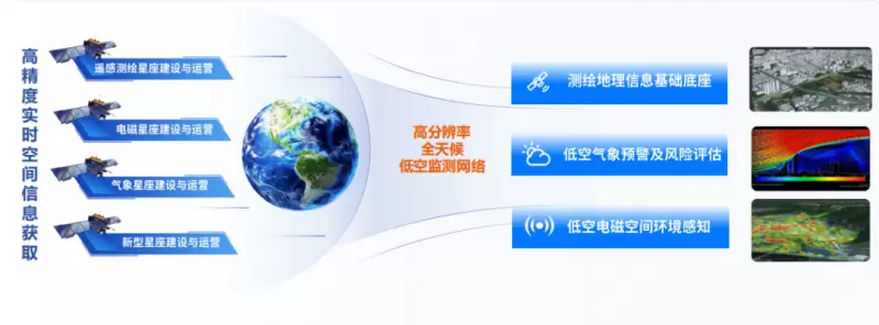 天,指天基卫星,随着中科星图在遥感测绘星座、电磁星座、气象星座以及新型星座的陆续建设和运营,通过自主构建的天基卫星星座能力,将为低空飞行活动提供“鲜活”的空天信息数据保障,可实现低空地理底板、低空气象、低空电磁环境等数据的鲜活更新和高精度支持,为动态飞行活动实时监视和预警调度提供时空计算依据。