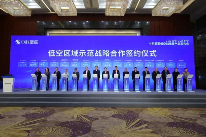 中科星图与呼和浩特航天经济开发区、沈阳市和平区、台州湾新区管委会、雄安新区商务和投资促进局、九江市规划集团、遥感卫星应用国家工程研究中心、厦门大学、厦门信息集团、厦门翔业集团、厦门市集美区、德州交投集团、德州市德城区九达城投、亳州魏武低空公司、南浔天途、珠海低空投等15家单位进行了战略合作签约,致力于打造低空经济发展的示范标杆。