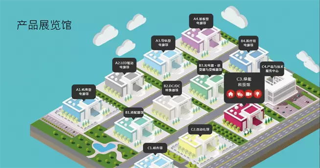 同时,为了更好实现SDG永续发展目标,及更好的推广明纬产品,明纬利用数字化优势提升流程效率,成立了线上展览馆并持续进行优化,包含电源馆、组件馆、自动化馆、绿能科技馆等12个馆,客户可以根据需求快速匹配到相应的高效解决方案。
