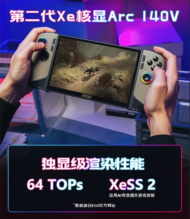 本次掌机硬件升级的重点,采用代号Lunar Lake的酷睿Ultra 7 258V拥有出众的低功耗能效表现,不仅非常适合超轻商务本,甚至是为更注重低功耗性能和续航掌机平台所量身打造!凭借台积电N3B先进工艺制程,相比酷睿Ultra初代有超过40%功耗优化,可以在更低的功耗上,实现更高的游戏帧数表现!