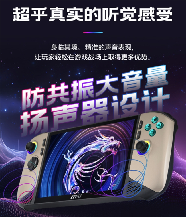 音频方面,掌机也做了面向使用者的开口设计,支持Hi-Res认证的音频,并且支持DTS音效。在实际外放的音量,以及高频/低频的调音上也做了细节优化,无论是在游戏还是影音观感,都能带来更好的沉浸感和视听体验。