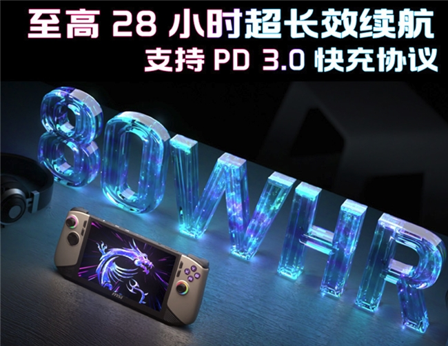 掌机玩家最关注的续航表现,在拥有出色能效比的Lunar Lake芯片之外,微星CLAW 8 AI+掌机2025还将电池扩容到80Whr(典型值,会有±5%差值),将曾经Win掌机的续航痛点大大优化和提升。而针对一些并不吃性能的游戏,玩家还可以在MSI Center M中开启“续航模式”,实现高能效的8W功耗,并且在支持DX12游戏还能将游戏锁到30帧,进一步去延长掌机的续航力。