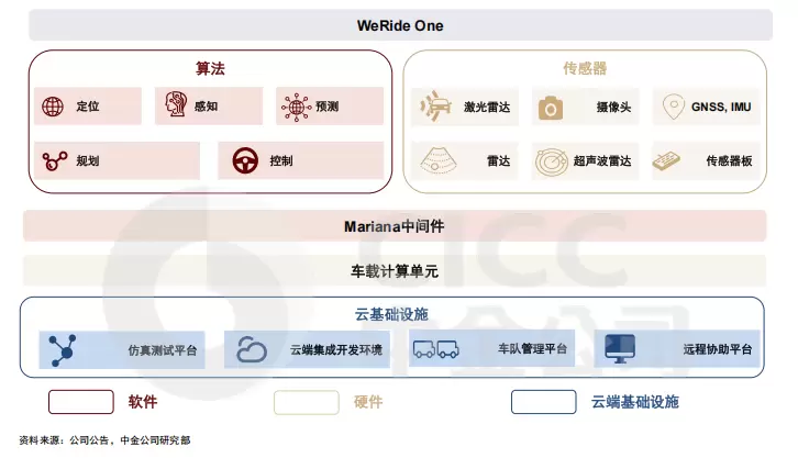 文远知行是全球领先的自动驾驶科技公司,专注开发安全可靠、商业可拓展的自动驾驶技术。经过多年的研发积累,文远知行沉淀了一套统一的技术底座 WeRide One,是公司各条产品线的共同基础。WeRide One 由软件、硬件和云端基础设施等部分构成,能够适配不同的传感器 组合,具有较强的冗余性、灵活性和延展性。公司的 L2 至 L4 产品均可以共享技术底座,推动文远知行在技术栈层面形成规模效应。
