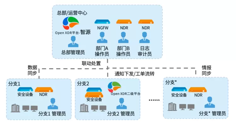 图注:山石网科Open XDR分支机构安全运营场景方案